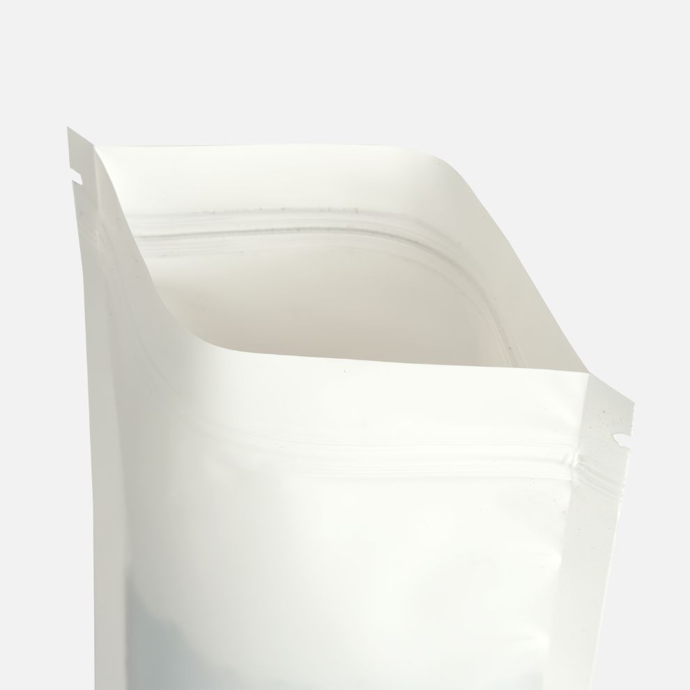 The milky stand-up pouch with zipper is a visually appealing and functional packaging solution designed to showcase products with a milky or creamy appearance. Made from high-quality materials in a milky white or creamy tone, this pouch exudes a soft and inviting aesthetic.