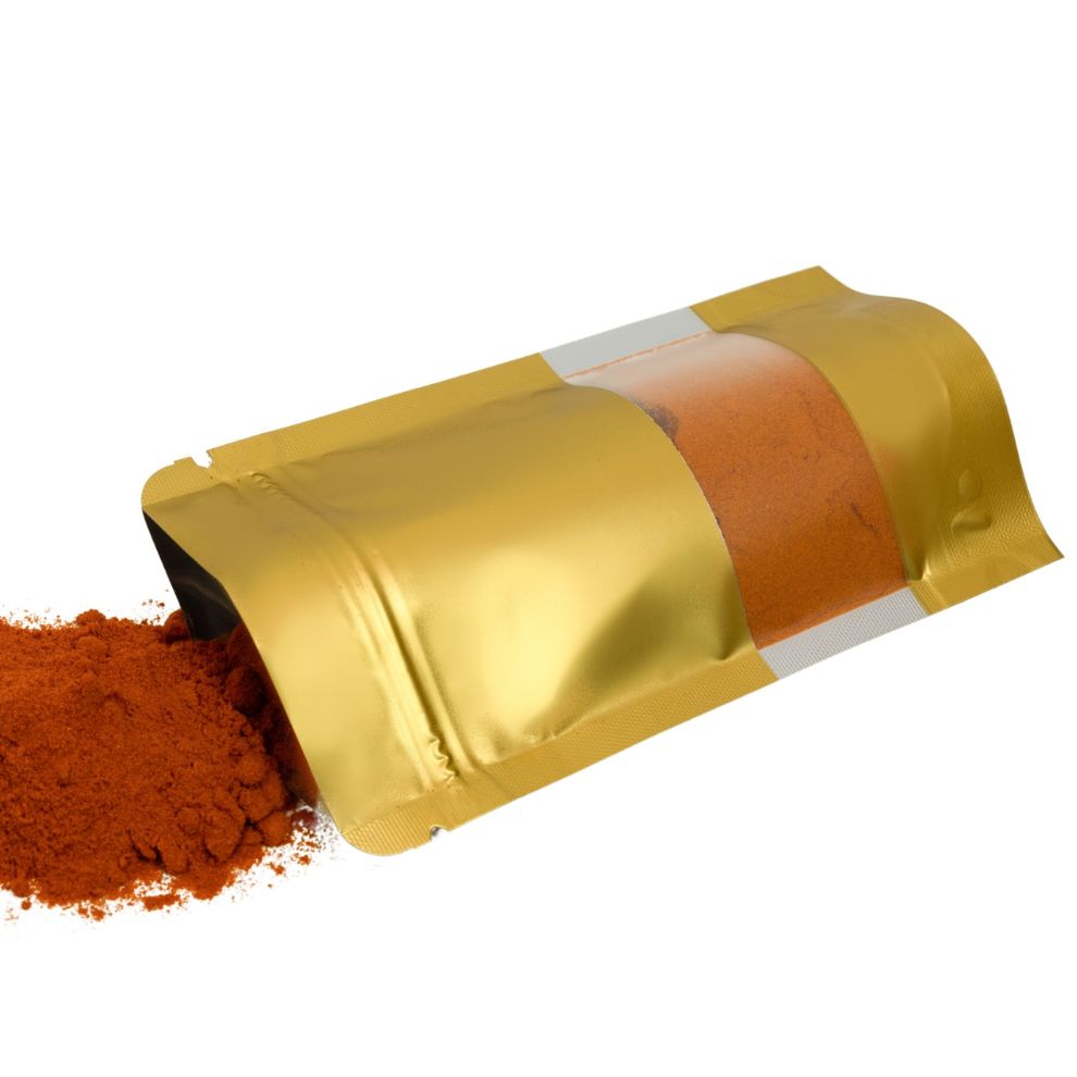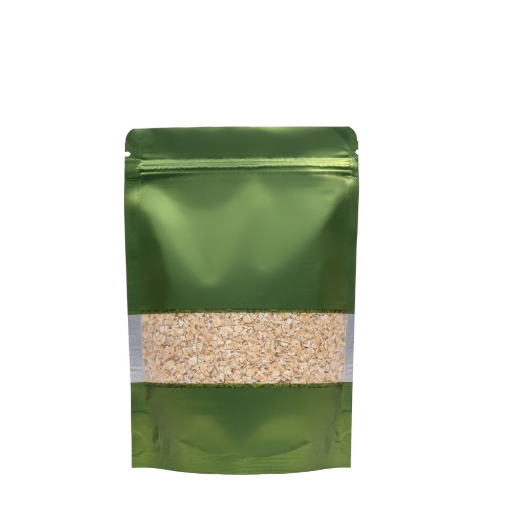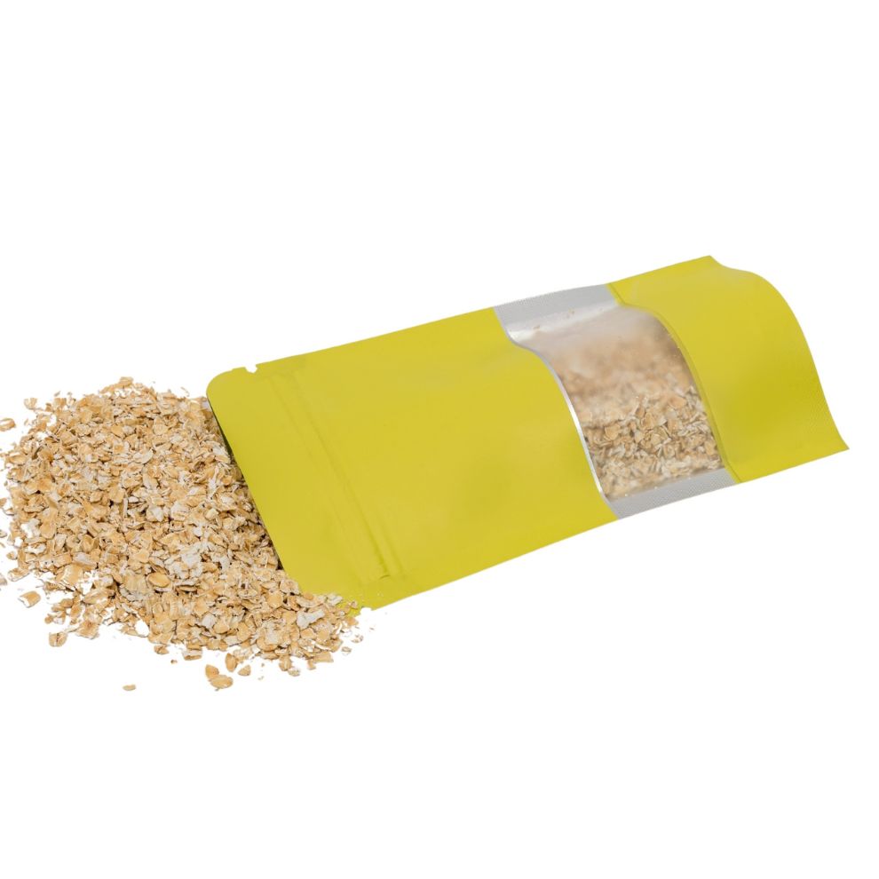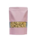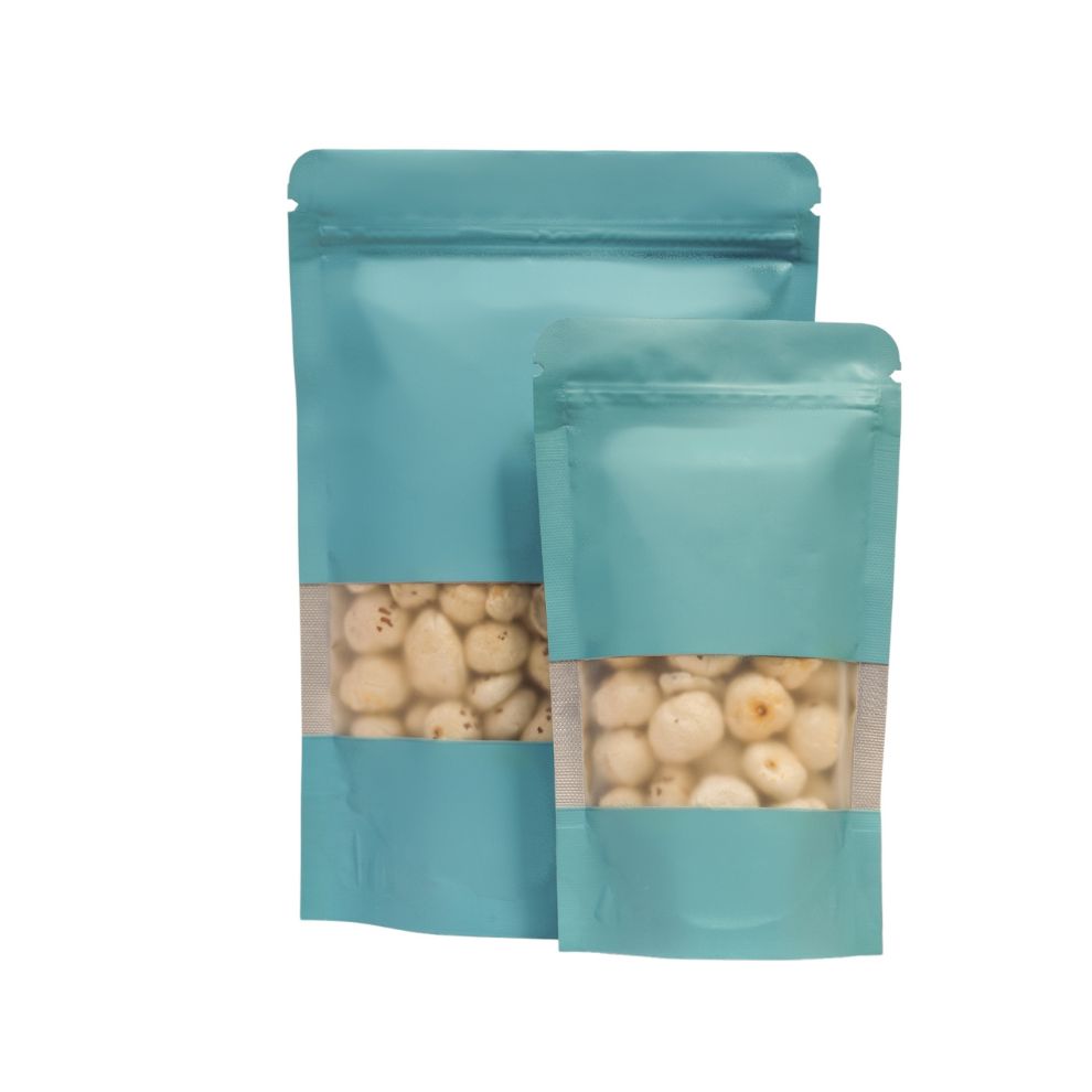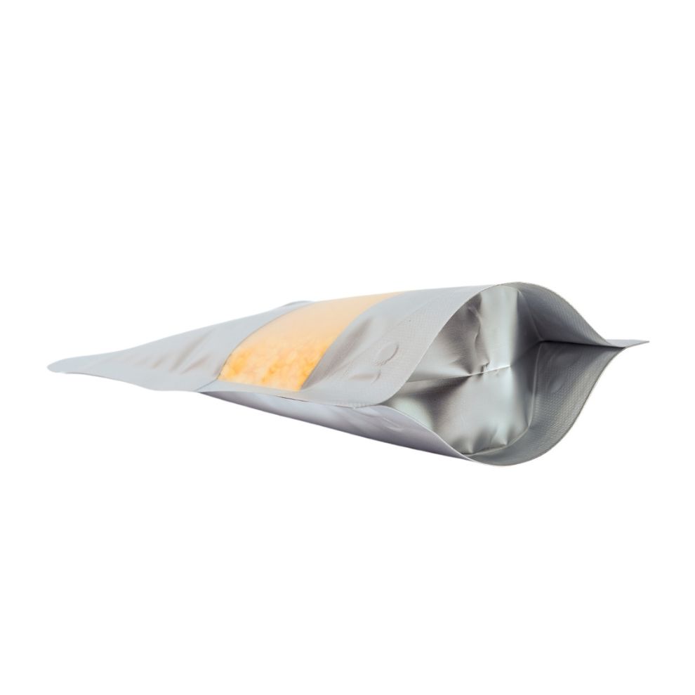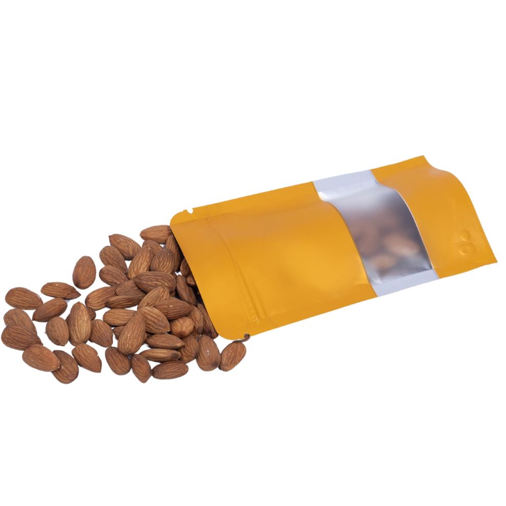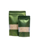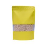 The matte stand-up pouch with zipper and window is a modern and versatile packaging solution that combines a sleek matte finish with a transparent window feature. This pouch offers a sophisticated and premium appearance while allowing a clear view of the contents inside.